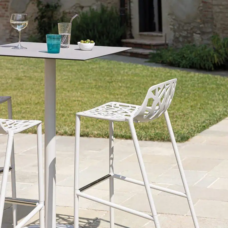De Forest‑stools bieden een minimalistisch design dat verwijst naar natuurlijke patronen en passen naadloos in hedendaagse buitenruimtes en interieurs. Dankzij de hoogwaardige aluminium afwerking zijn ze weerbestendig en onderhoudsarm, geschikt voor intensief gebruik in restaurants, cafés of thuis. Beschikbare kleuren en optionele kussens maken de stoelen multifunctioneel en stijlvol, ideaal voor bar, keuken of lounge‑opstellingen.
