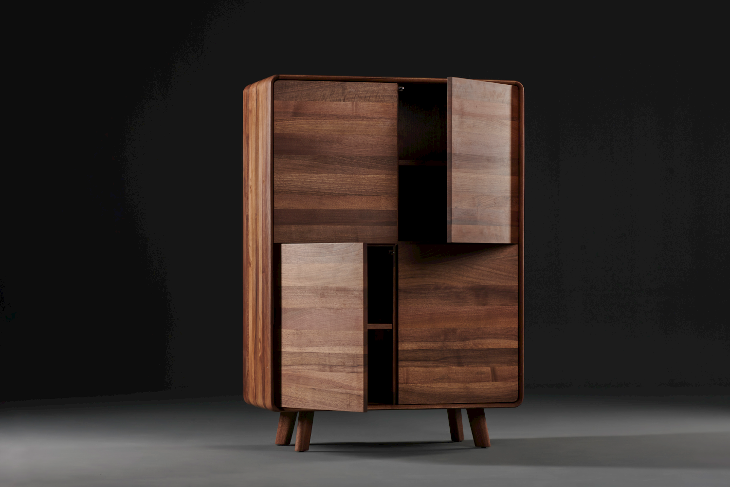 De Neva highboard, lowboard en sideboard van Artisan vormen een elegante collectie opbergmeubels in massief hout, ontworpen door Regular Company. Kenmerkend zijn de vloeiende, zachte lijnen en ergonomische vormen die een subtiele maar herkenbare esthetiek creëren. De meubels combineren minimalistisch design met organische houtstructuren en passen zich moeiteloos aan bestaande interieurs aan, terwijl ze een verfijnde en tijdloze uitstraling behouden.